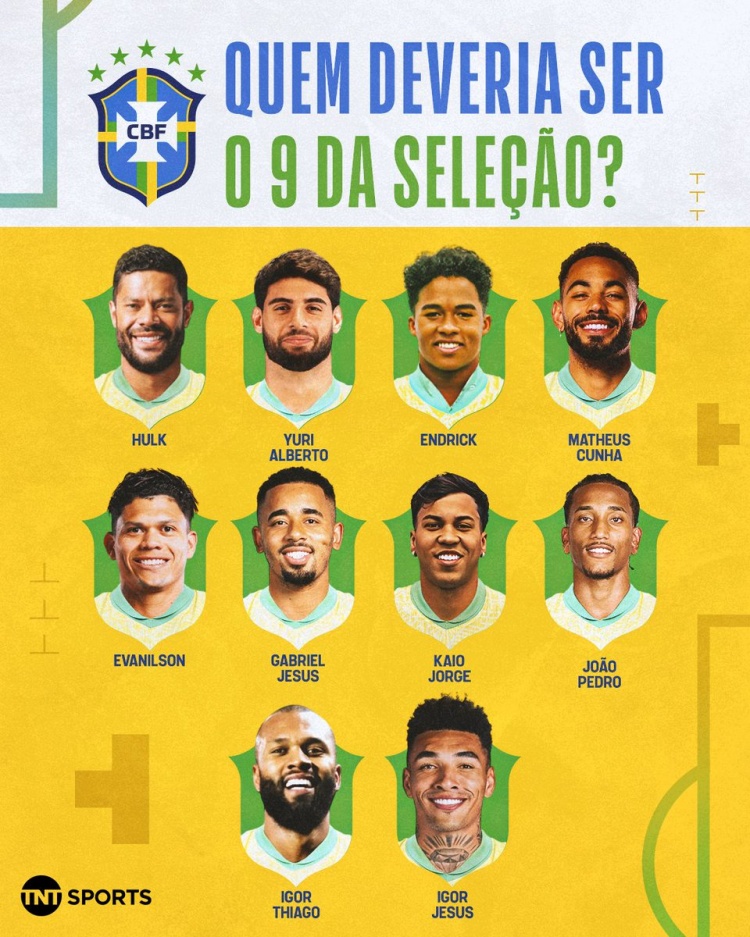 1月26日讯 在上周的各联赛比赛中多名巴西前锋表现出色,TNT列出的10名可以出任9号位的球员中,恩德里克、库尼亚、热苏斯、伊戈尔·蒂亚戈在列。世界杯即将到来,哪位球员将入选安切洛蒂的球队阵容,代表巴西出战这项赛事。